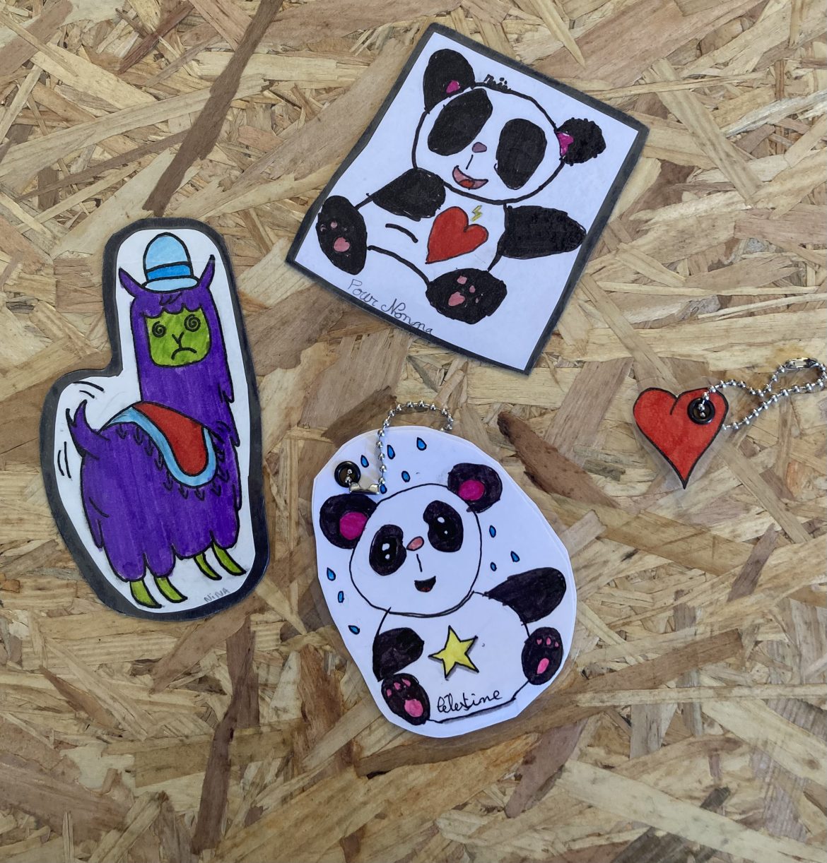 Ces petits personnages attendrissants rencontrent beaucoup de succès au sein de mes ateliers. La douceur de leurs formes arrondies, leurs couleurs vives ou pastels et leurs yeux si particuliers se déclinent sur magnet, porte-clef, carte postale ou autre.